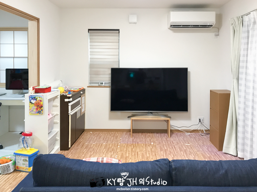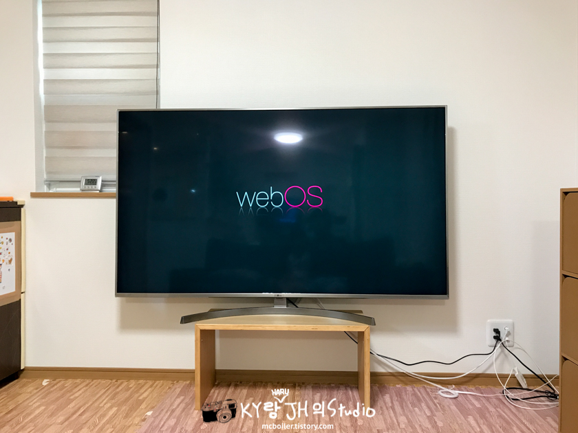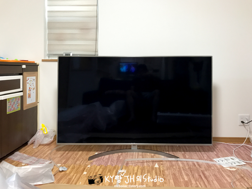 지금 새로운 텔레비전을 맞이하기(?) 위해 거실을 있던 텔레비전을 잠시 옆으로 치우고 자리를 마련해 뒀습니다.