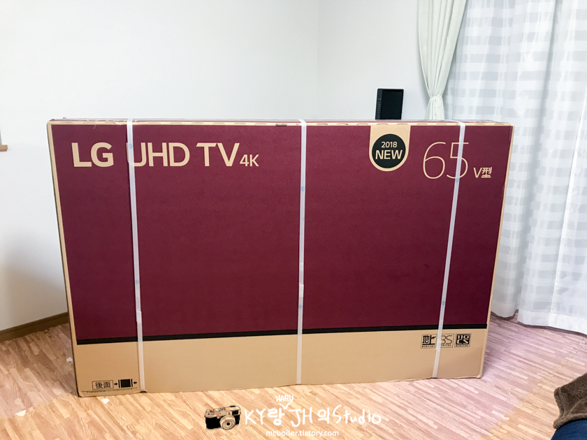 박스 크기가 있다고는 해도 전자제품 양품점에서 볼 때는 그리 안 커 보였어도 역시나 집에 들여놓으니 훨씬 크게 보였습니다.