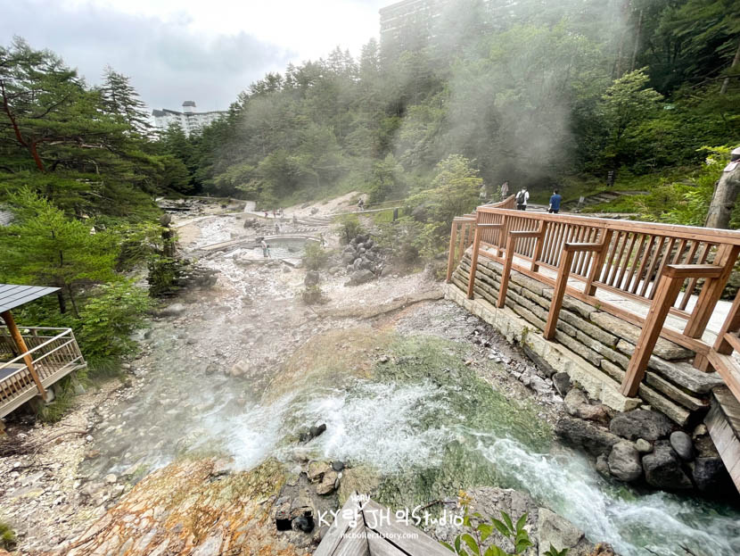 강가 주변 여기저기에 온천이 나와서 온천이 강처럼 흐르고 있었습니다. 여기도 야간에는 라이트 업해서 야간에도 산책을 즐길 수 있을 것 같습니다