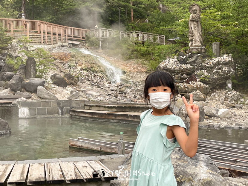 하루는 온천이 흐르는 게 신기했는지 몇 번이고 "여기(온천) 만져봐도 돼?"라고 물어봤습니다 ㅎㅎㅎ