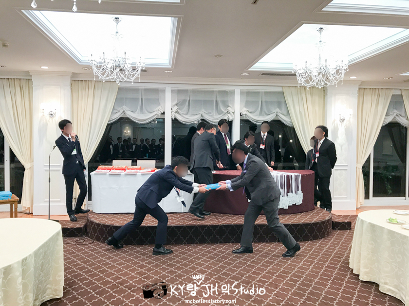 한동안 먹고 마시는 시간이 지난 뒤에 경품 추첨 시간이 되었는데 참가 인원 전원이 무엇인가는 선물을 받을 수 있었는데