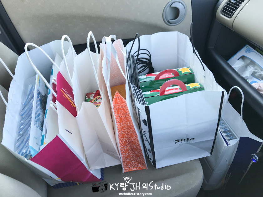 회사로 돌아가는 차 안에는 이날 산 과자들로 조수석이 꽉 찼습니다.