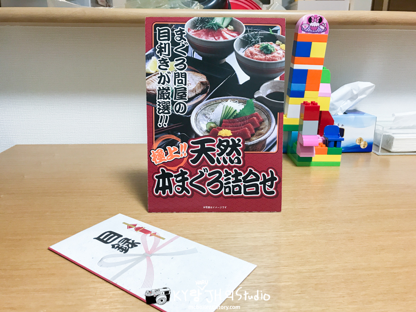 상품은 천연 참치 세트였는데.... 생선보다 고기를 좋아하기에 2등 3등이 받은 브랜드 소고기 세트가 더 탐났습니다.