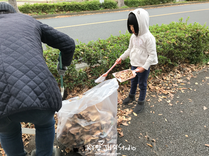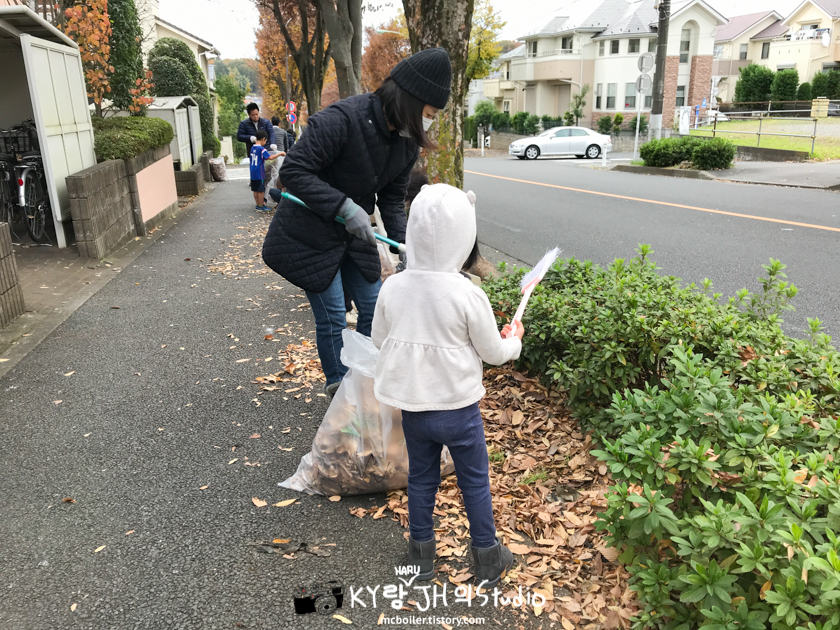 매년 12월에 마을 자치회에서 하는 동네에 떨어진 낙엽 대청소에 올해도 참가했습니다.