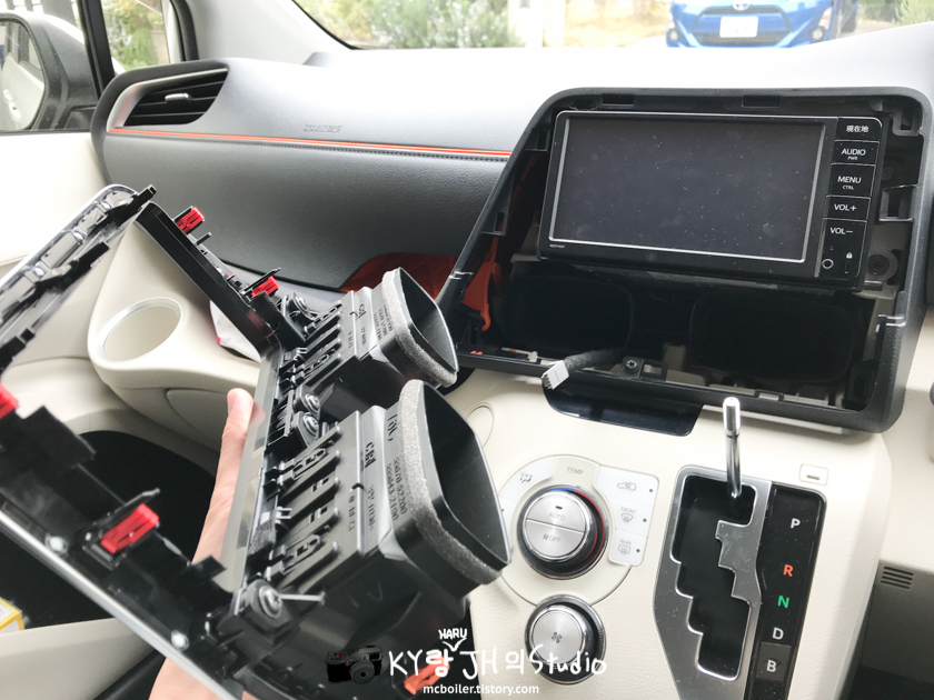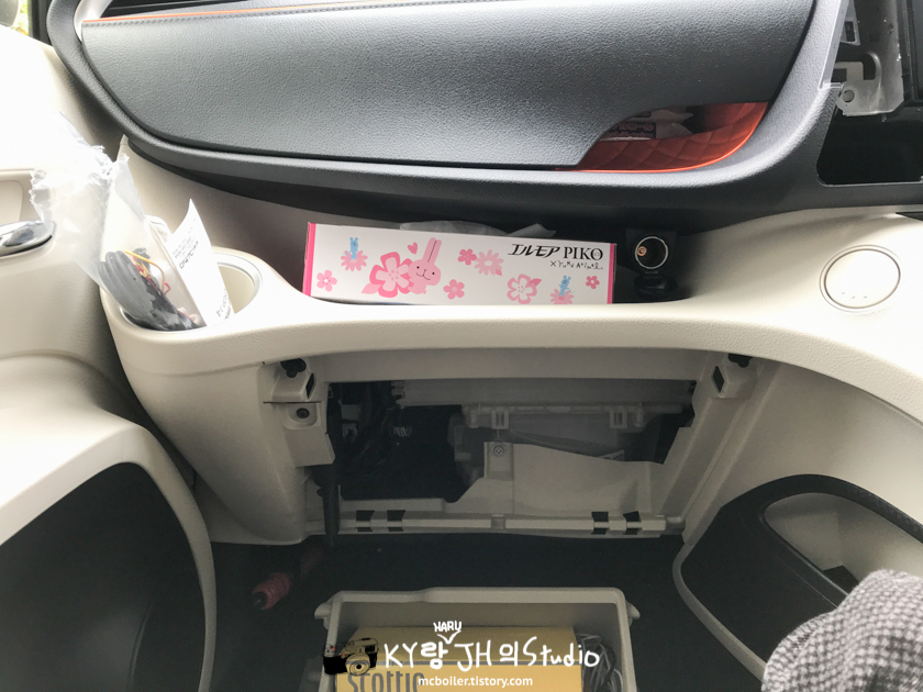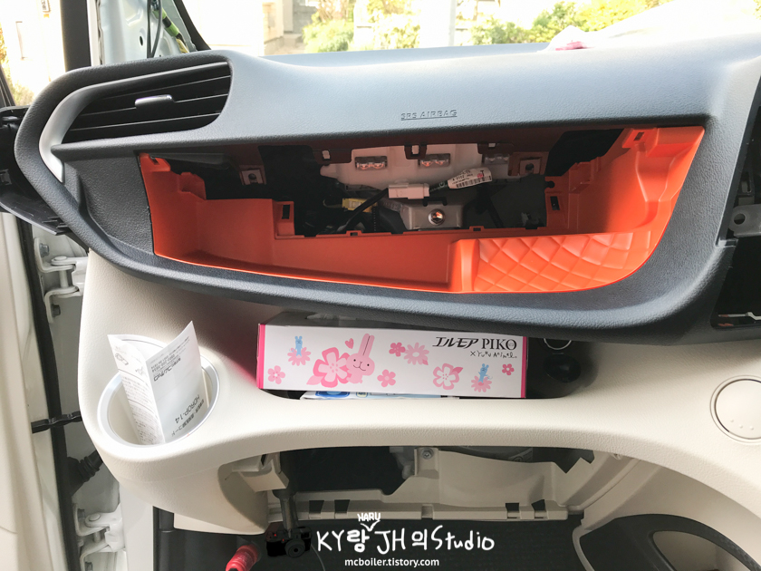 본격적으로 작업을 시작하기 위해 조수석 쪽의 커버를 뜯기 시작했습니다.