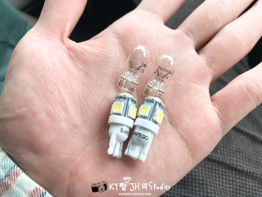 순정 전구와 아마존에서 산 저렴~~한 LED 비교 사진...