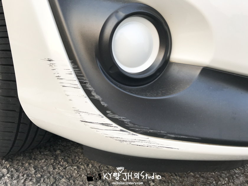 차의 사이즈에 익숙하지 않아서 구몬학습의 주차장에서 앞 범퍼를 조금 긁었습니다.