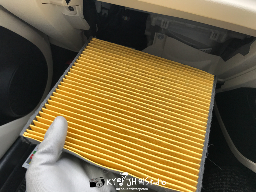 커버를 뜯은 김에 에어컨 필터도 꺼내서 확인해봤더니 새거가 들어 있어서 다시 그대로 돌려놓았습니다.