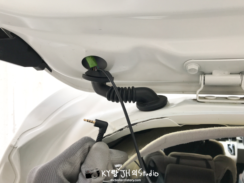 후방 카메라는 전면 카메라에 연결해야 하기에 트렁크에서 운전석까지 케이블 배선 작업을 시작했습니다.
