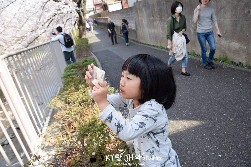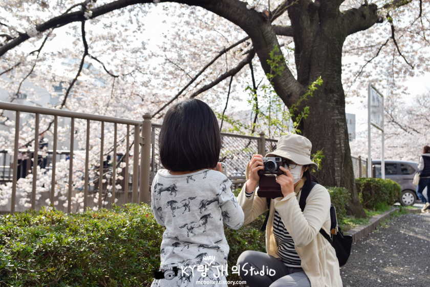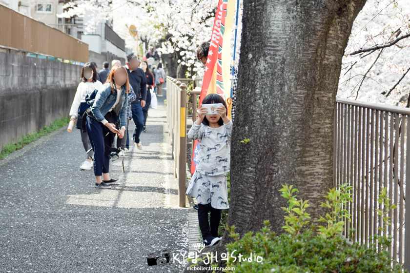 강과 함께 벚꽃 사진을 찍을 수 있는 다리 위에는 저를 포함해서 사진을 찍으려는 사람들로 부적 거렸습니다.