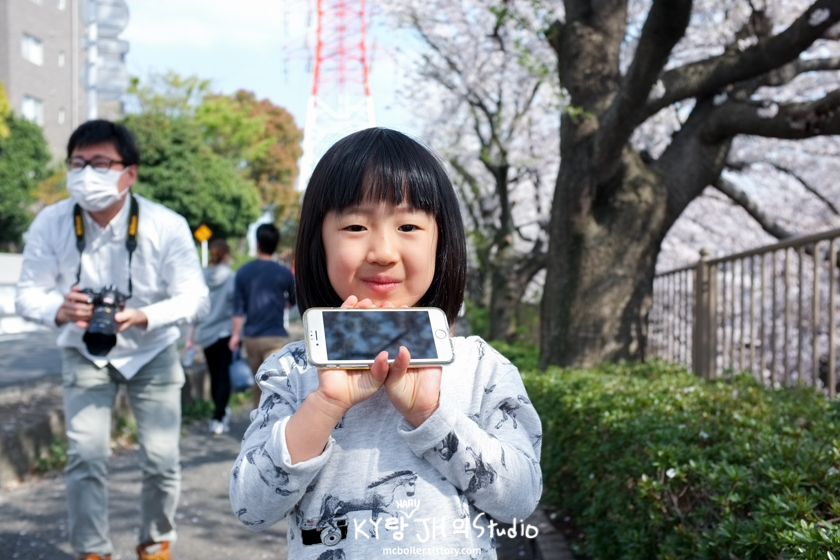 하루도 사진 찍는 걸 좋아해서 자기 핸드폰으로 벚꽃 사진들을 찍기 시작했습니다.
