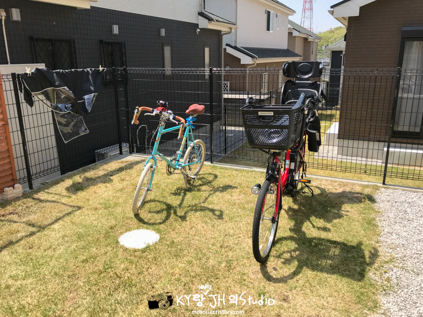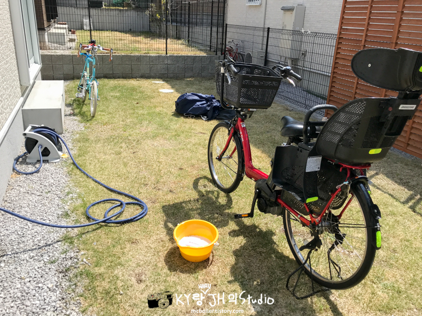 다른 주말에는 오랜만에 자전거 두대를 전부 뒤뜰에 꺼내서