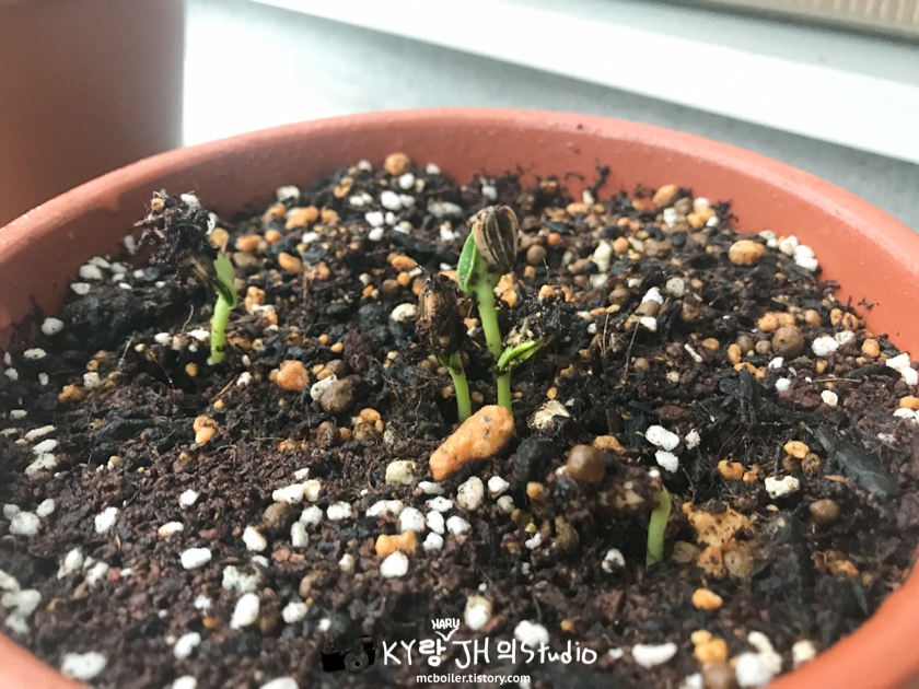 그 뒤로 하루는 새싹이 나왔는지 매일 아침 화분을 점검(?) 했습니다.