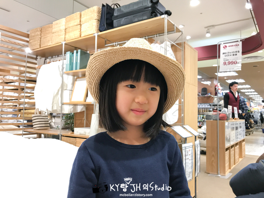 무인양품에 물건 사러 갔을 때 혼자서 모자 쓰고 가방 들고 아빠를 불러서 패션쇼를 시작했습니다 ㅎㅎㅎ