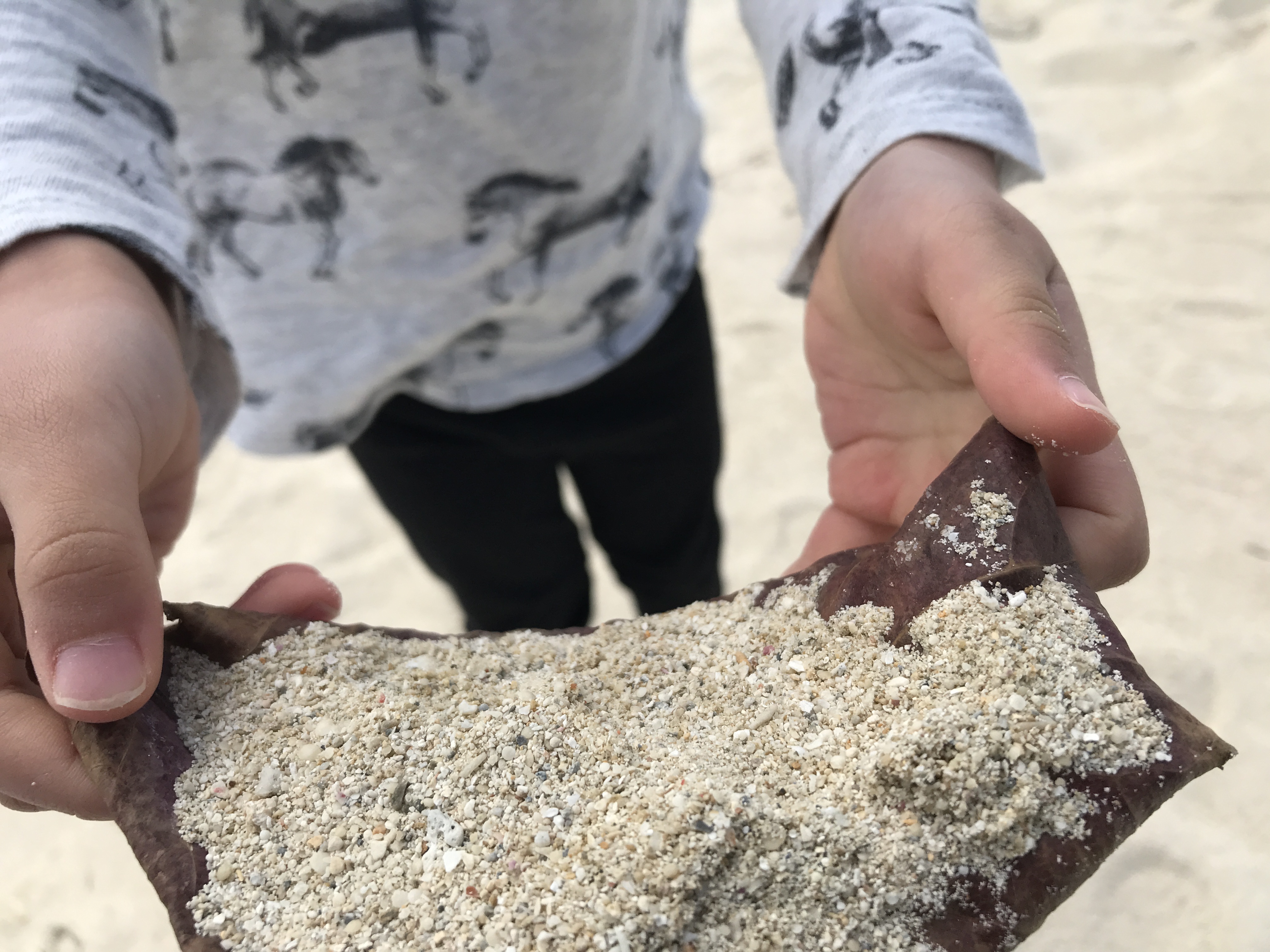 でもハル〜、お姉ちゃんたちには特別なものじゃないよ〜都会に住む3歳児には、貝殻は持って帰って宝物にするものなんだけどね〜^^;;
