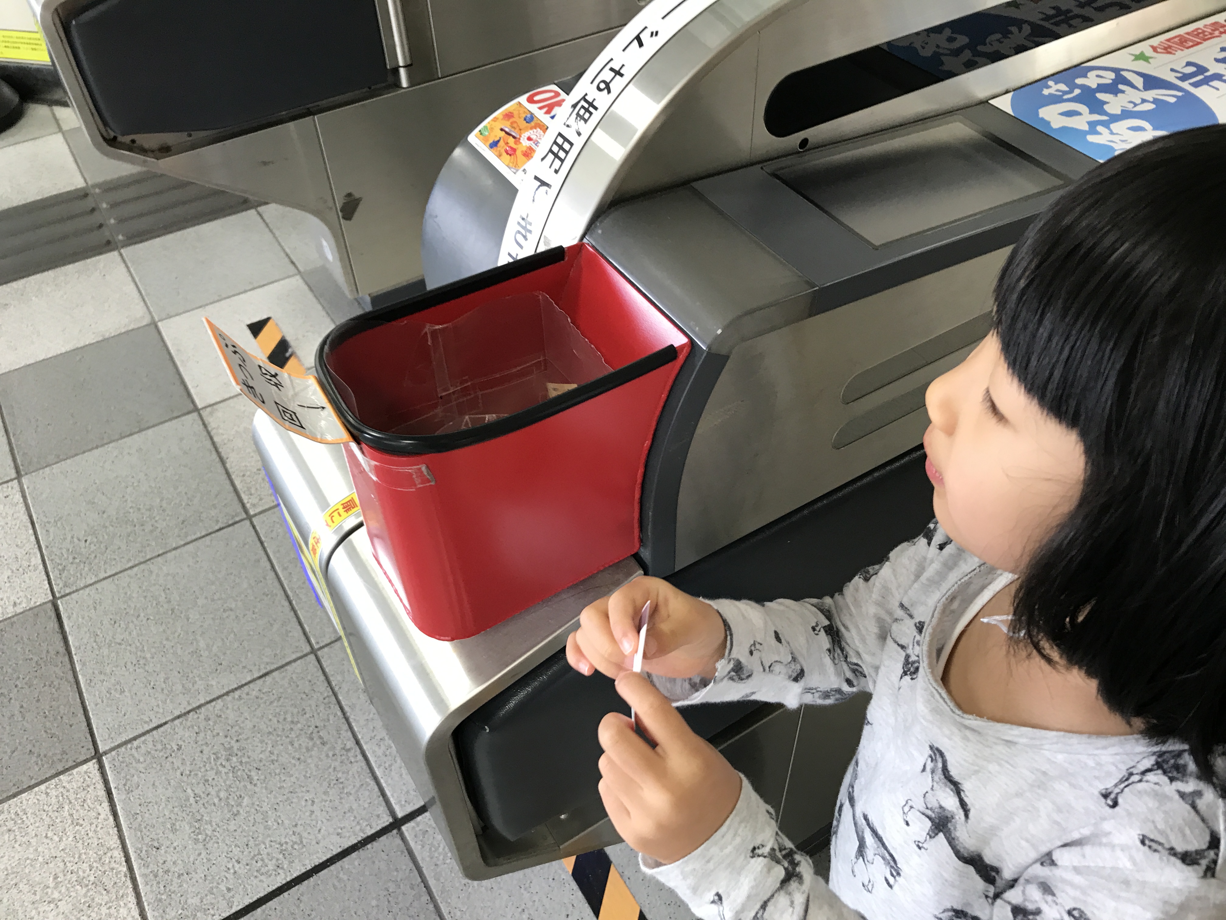 그리고 아사히바시 역에 도착해서 개찰구를 나올 때, 표를 이 빨간 상자에 넣는 방식이었습니다. 뭔가 재미있었습니다 ^^;