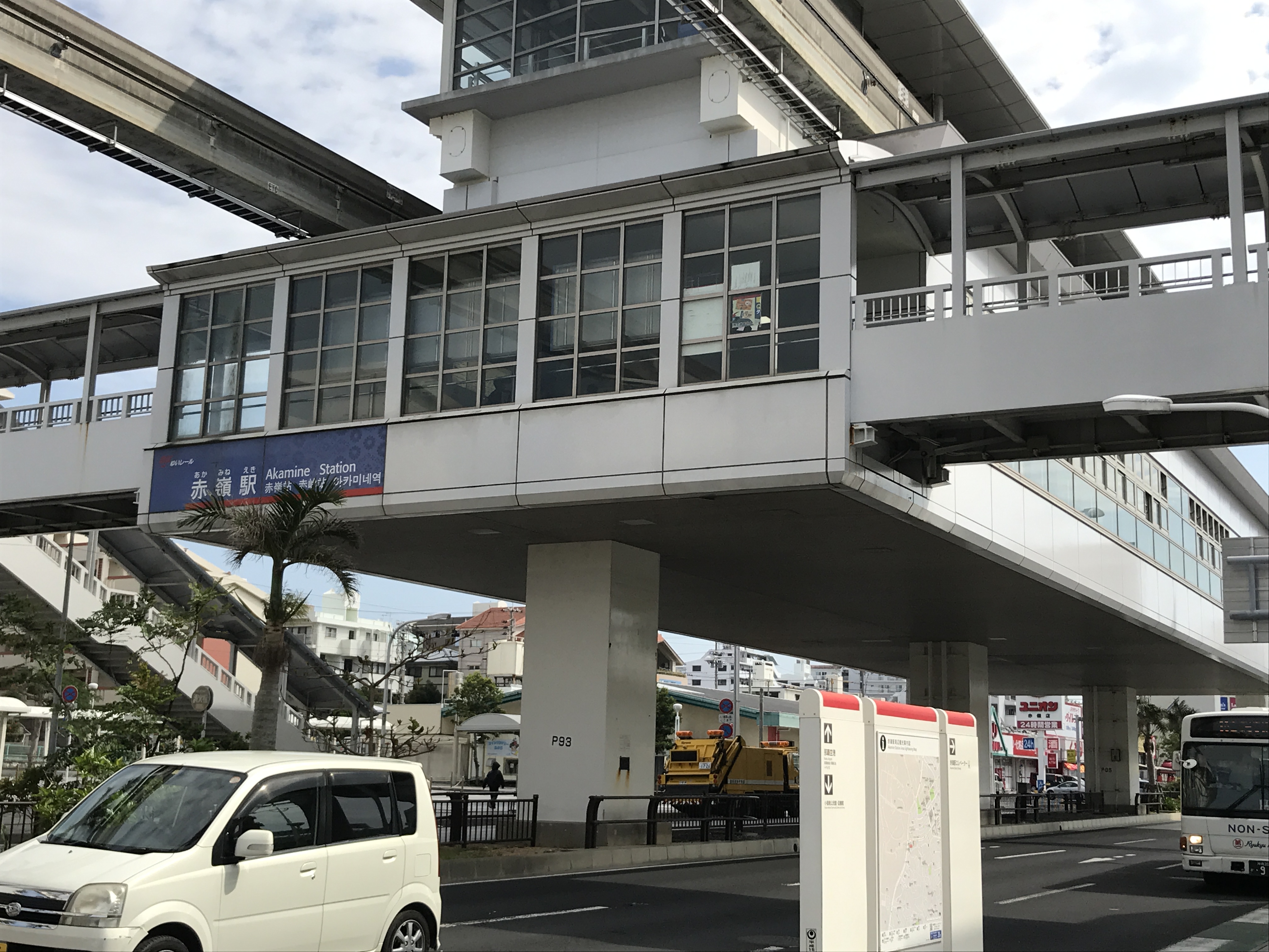 結構探して、なんとか1箇所だけ見つかりました。そこでは子供用のヘルメットも無料で貸してくれるとのことで、とても良心的だと思いました。ということで、2日目はまずそのレンタサイクル屋へ向かうため、朝ご飯を食べてハルとホテルから赤嶺駅まで歩きました。