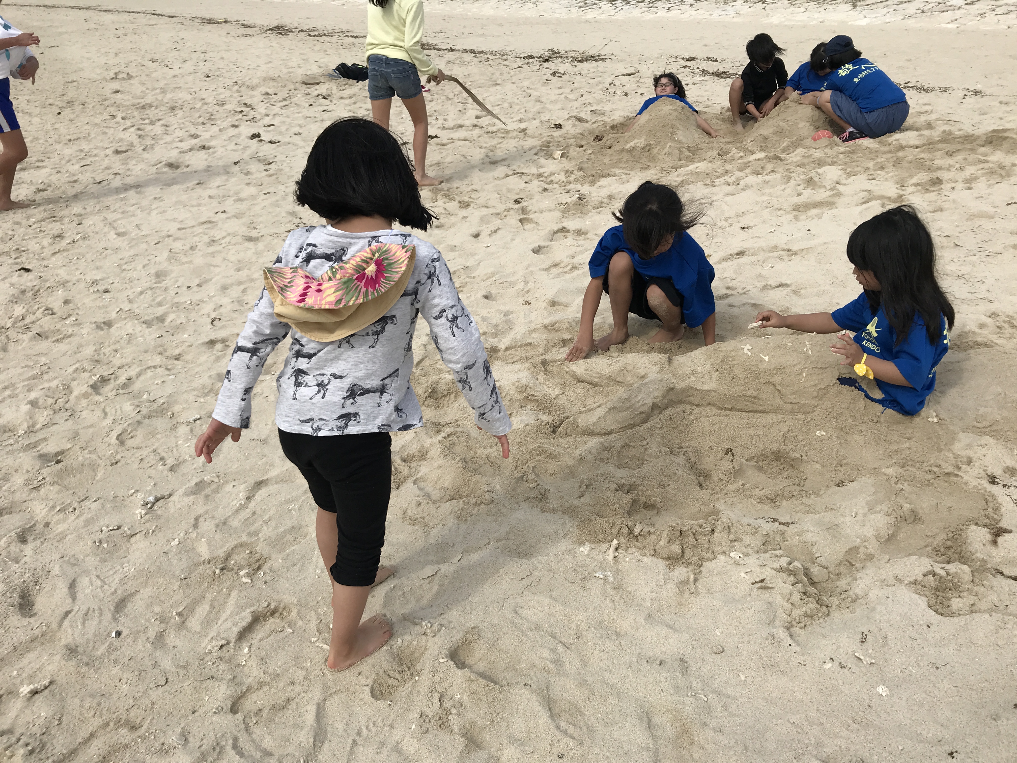 ここでまたハルが社交性を発揮し始めました^^; 地元の小学生の剣道部のお姉さんたちが慣れた様子で砂浜遊びをしてるところに突撃して...