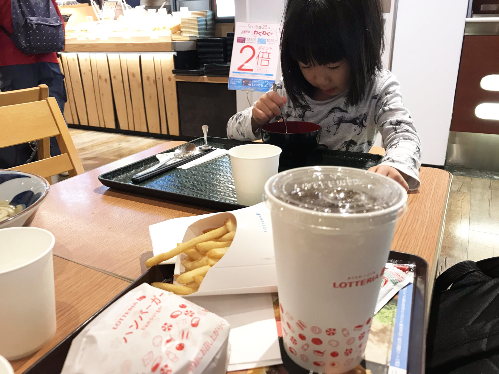 도중에 오로쿠 역 앞에 큰 이온(롯데마트와 같은 대형슈퍼)이 있었기 때문에 푸드 코트에서 점심. 하루는 우동, 저는 롯데리아 ...
