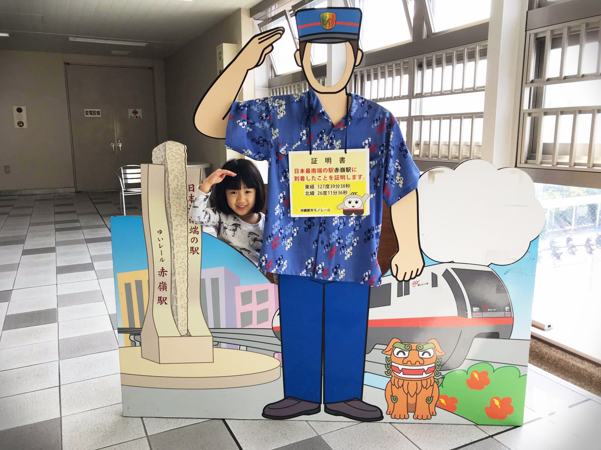改札を抜けると、赤嶺駅は日本最南端の駅ということで顔出しパネルがありました。