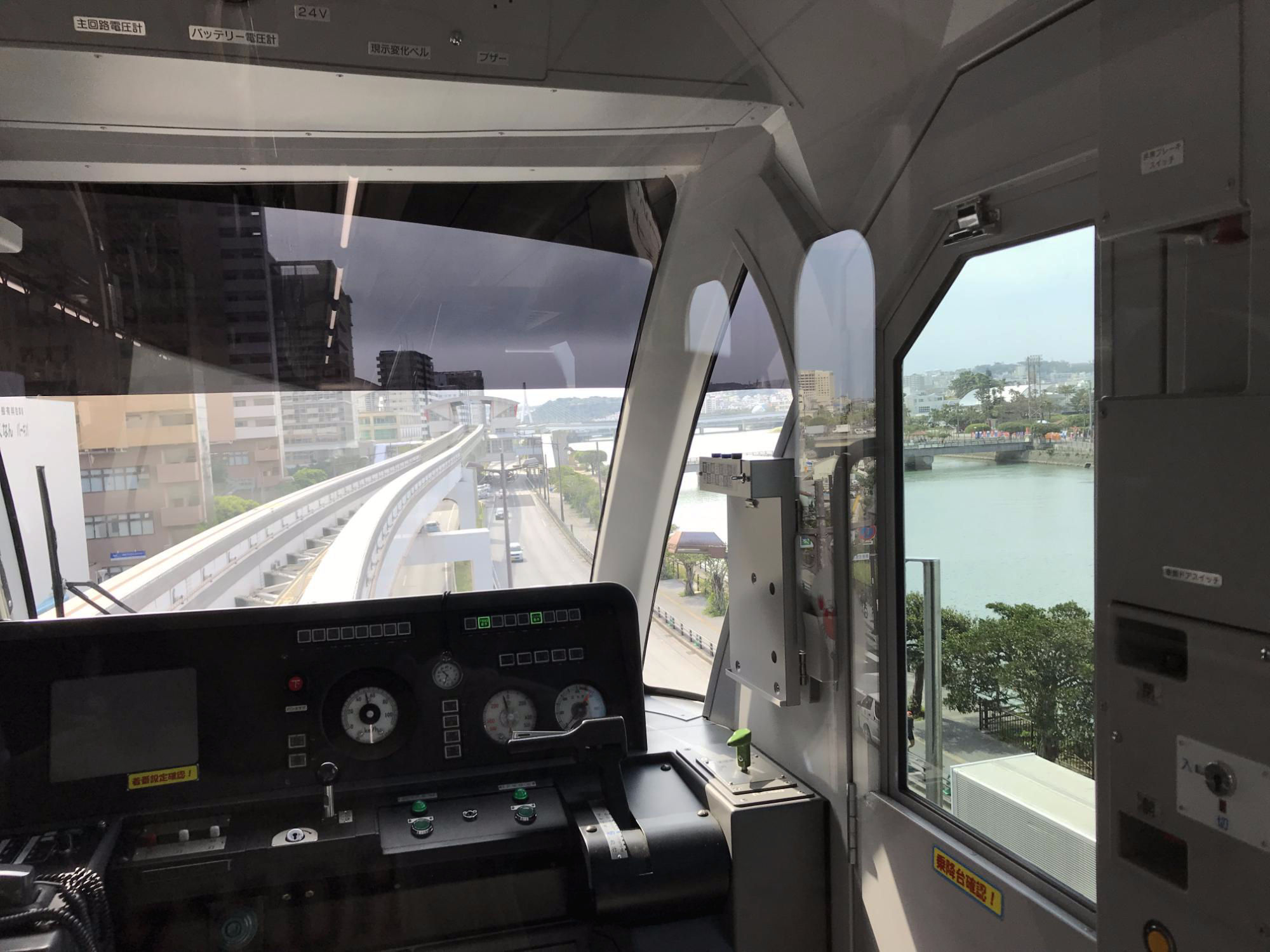 ゆいレールのなか。那覇の中心市街地を横断する久茂地川が見えました。濁っているのかな?でも緑色で綺麗なような...??