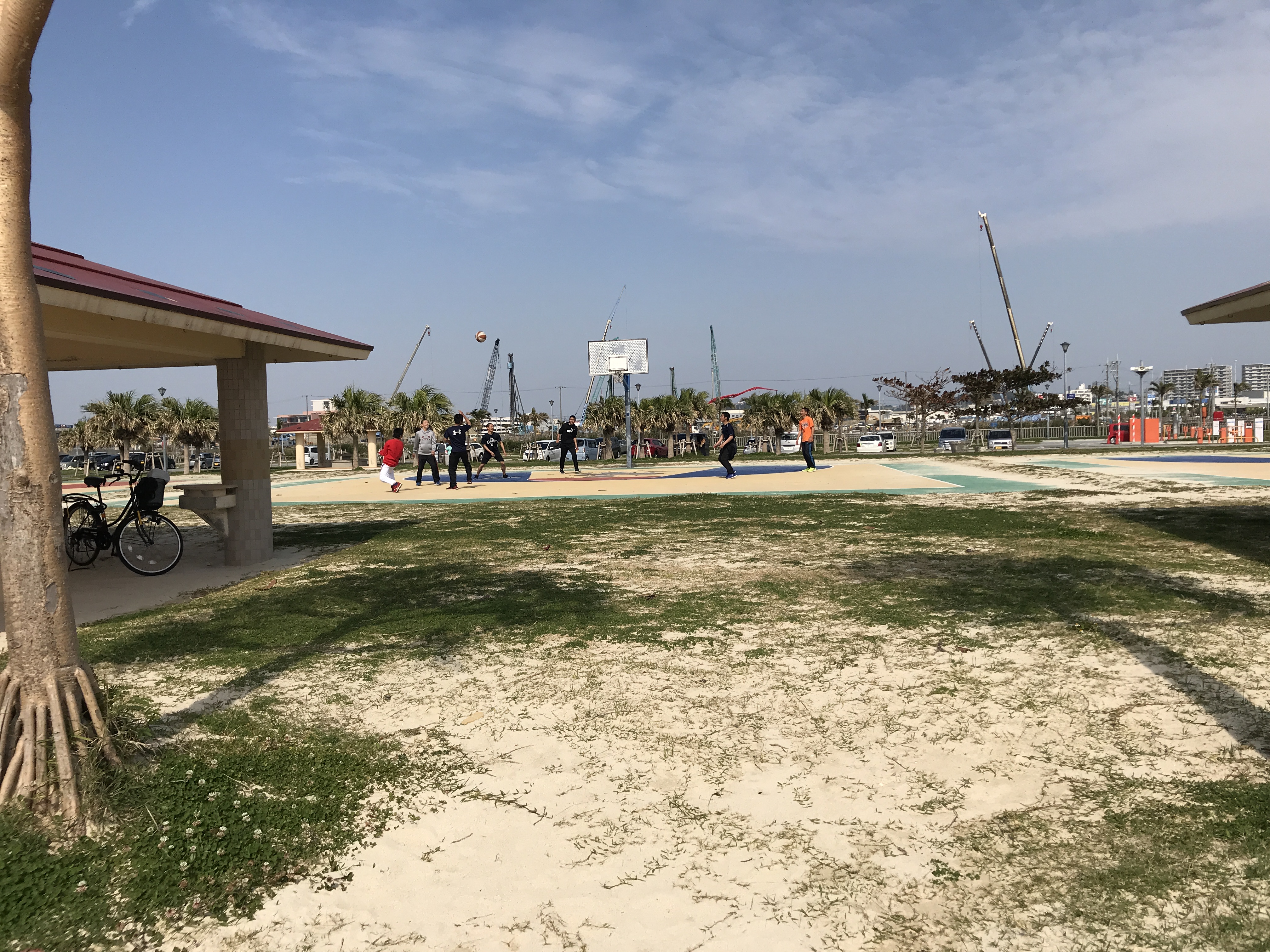 중고생이 농구를 하고 있었습니다. 이 때는 봄 방학 중이었지만, 수업이 있는 날도 근처의 학생이 방과 후에 농구를 하러 온다고 합니다.