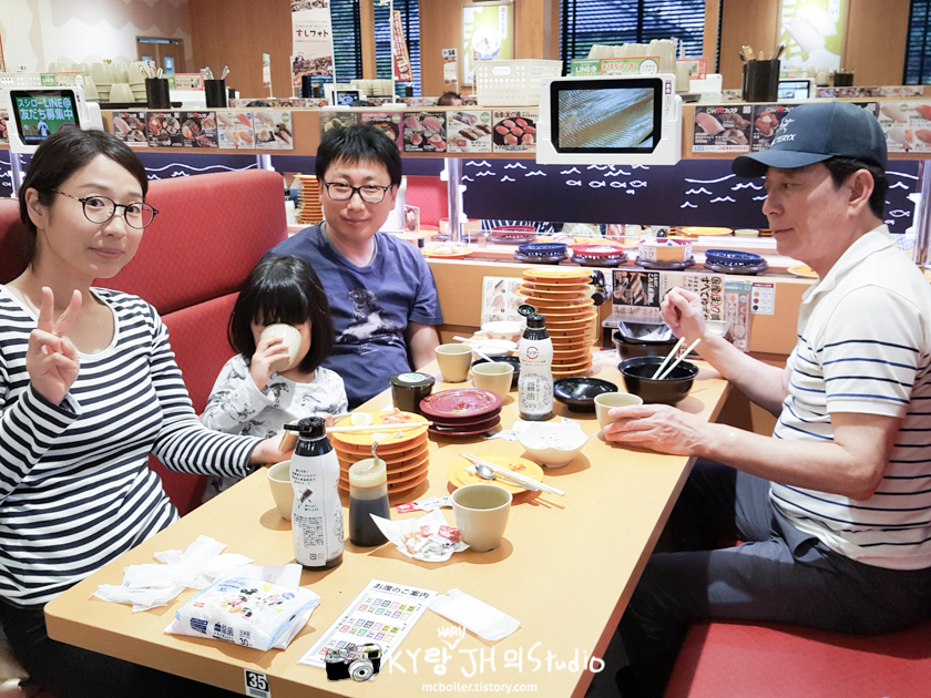 저녁에는 회전 초밥집에 가서 저녁을 먹었는데
