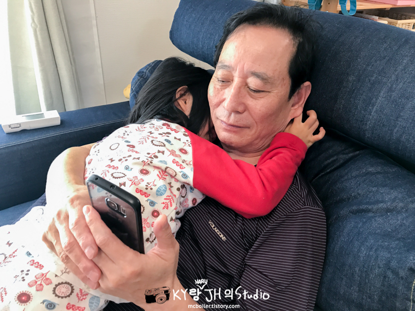그리고 할아버지한테 안겨서 아침부터 잘때까지 계~~~속 할아버지 귓볼을 가지고 놀았습니다.