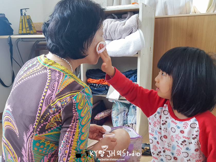 아침에 일어나서 할머니가 화장하고 계시면 할머니가 계신 방으로 쫄래쫄래 따라 들어가서 할머니 화장을 도와 주던 하루