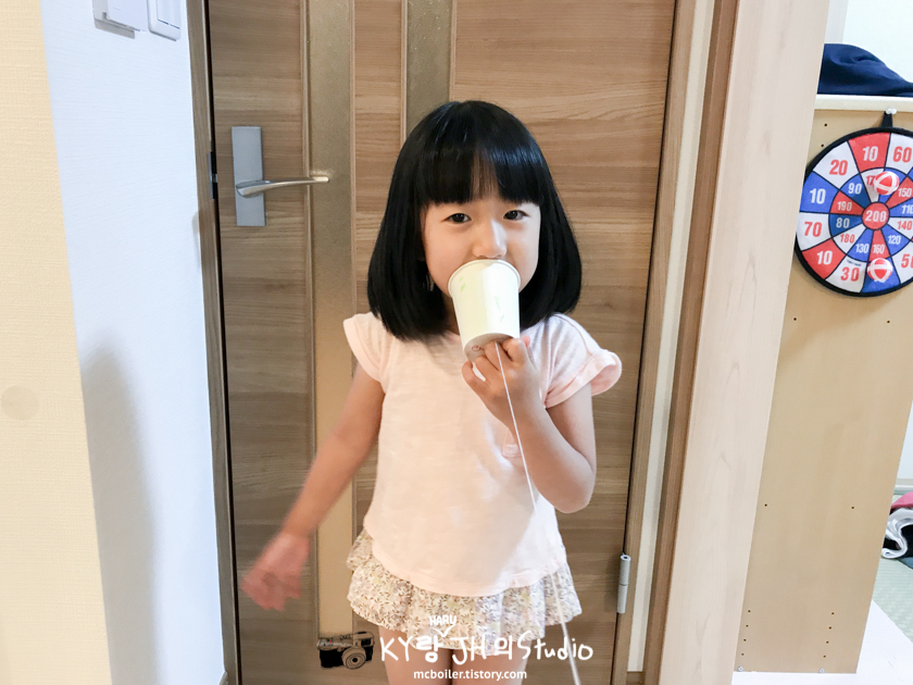 유치원에서 만든 적이 있는지 하루가 갑자기 실 전화기를 만들어 달라고 해서 순식간에 뚝딱 만들었습니다. ㅎㅎㅎ