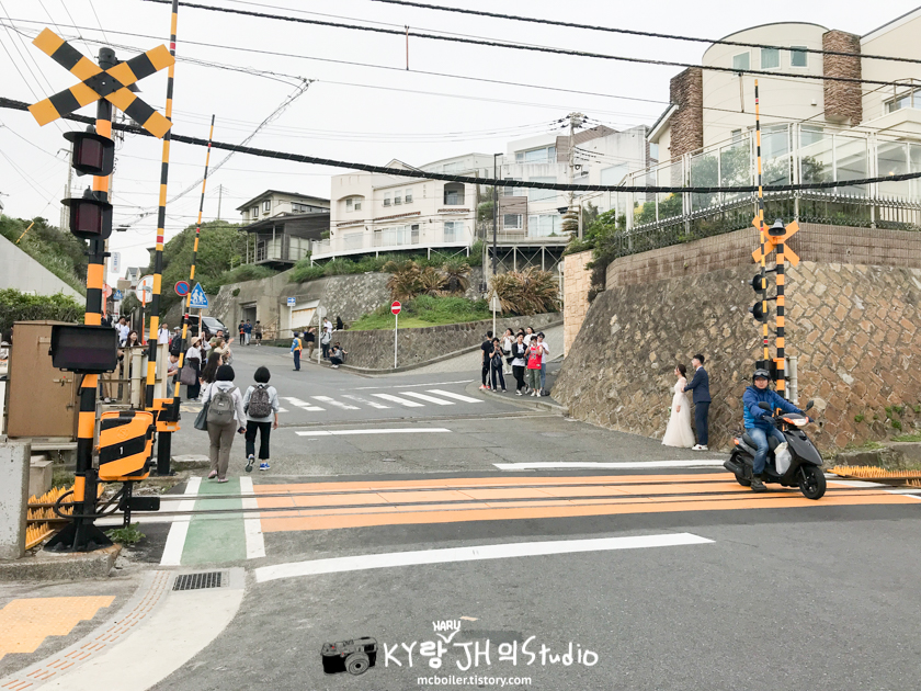슬램덩크의 애니메이션 오프닝에도 나오는 건널목에는 전철이 오는 시간을 기다려서 기념사진을 찍는 많은 관광객들과 함께
