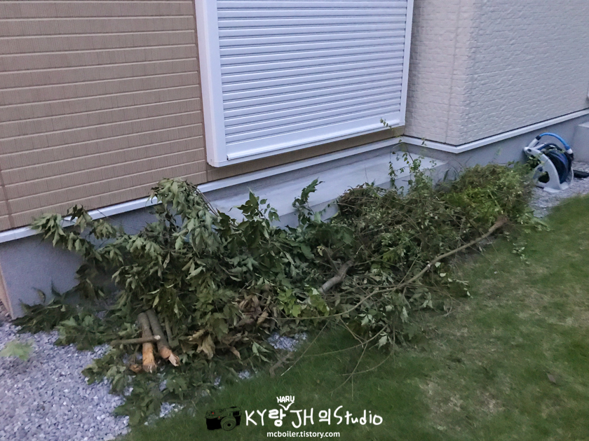 그중 현관에 가까운 한 그루의 나무가 현관을 가릴 정도로 점점 자라서 지금까지 몇 번이나 가지 치기를 하고