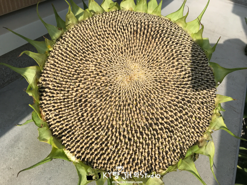 노랗고 이쁜 꽃이 피어있던 부분은 어느새 씨앗으로 촘촘하게 가득차 있었습니다.