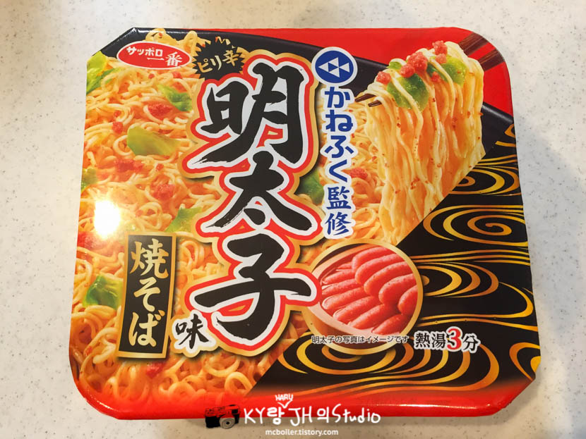 원래 야키소바계의 컵라면도 좋아하고 파란색으로 일본에서 명란젓으로 가장 유명한 업체인 카네후쿠(かねうく) 감수라고 쓰여 있어서