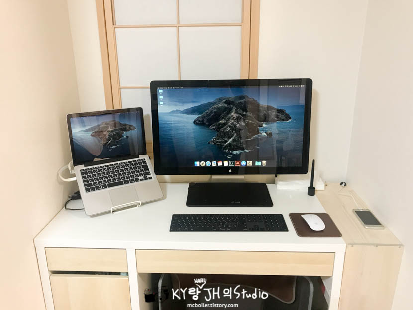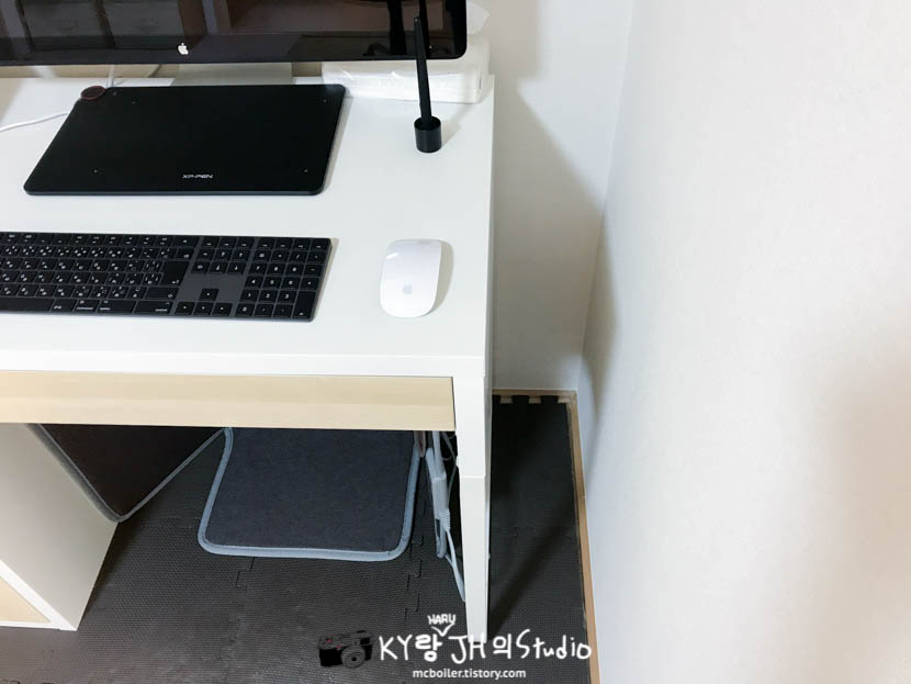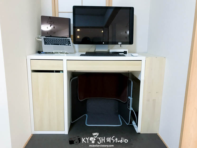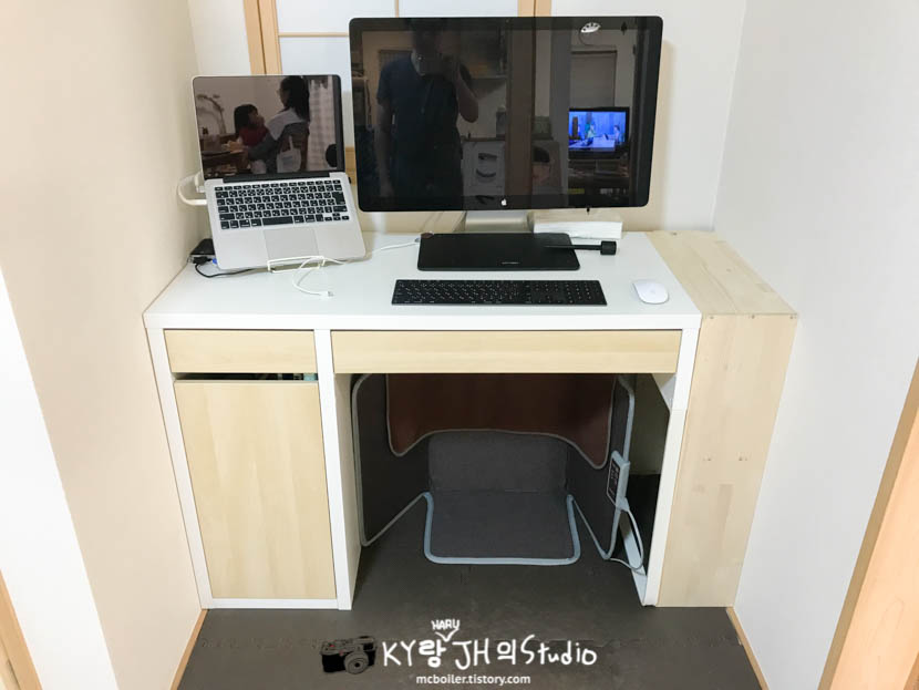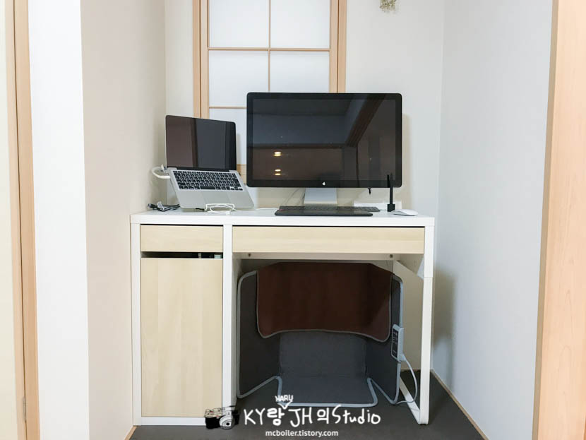 (원래 책상은 공간의 가운데에 위치하고 있었는데 이번에 오랜만에 청소하면서 벽 쪽으로 딱 붙여 버렸습니다)
