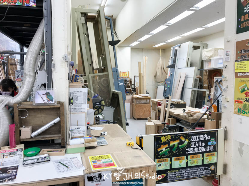 머리속에서 목재를 이리 잘라보고 저리 잘라보고 고민에 고민을 하다가 결국 2,100엔짜리 목판을 하나 산 뒤에