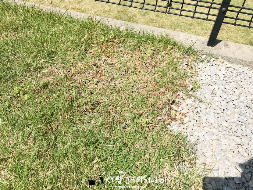 이곳은 원래 문제가 없었지만 작년에 해바라기를 심었다가 (클릭) 뽑고 난 뒤로 잔디가 거의 안 자라고 잡초만 자라났습니다.