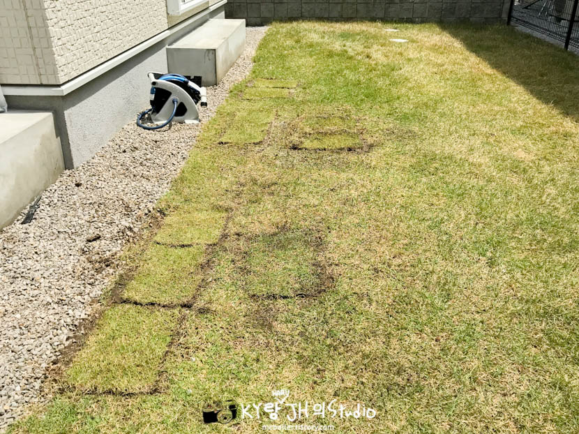 어느 정도 좋아졌지만 그 뒤로는 더 이상 나아질 기미가 보이지 않아서 결국 신경 쓰이는 부분의 잔디를 교체하기로 했습니다.