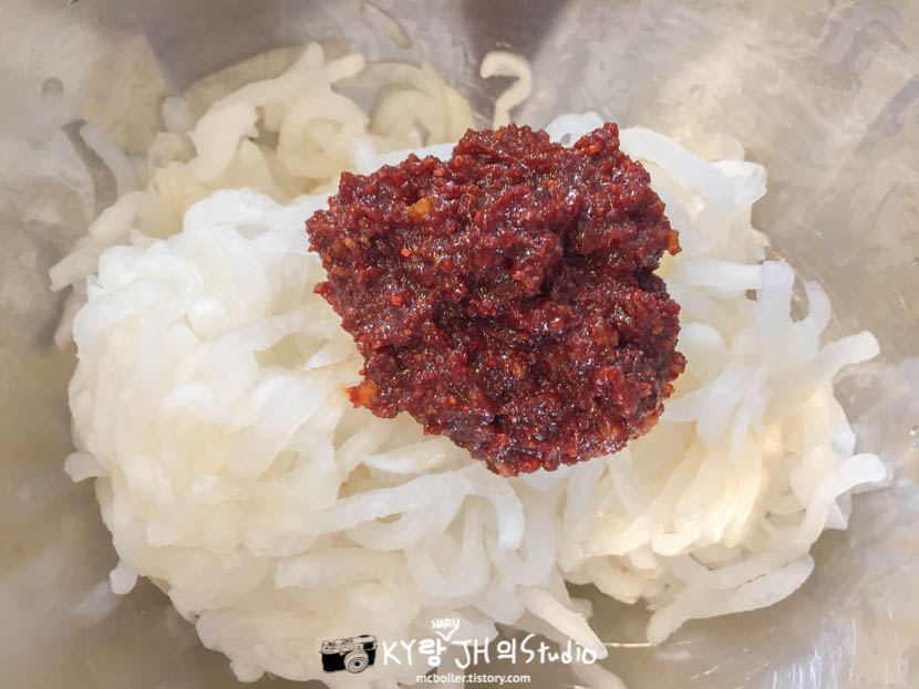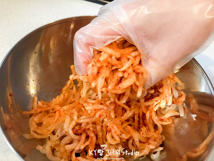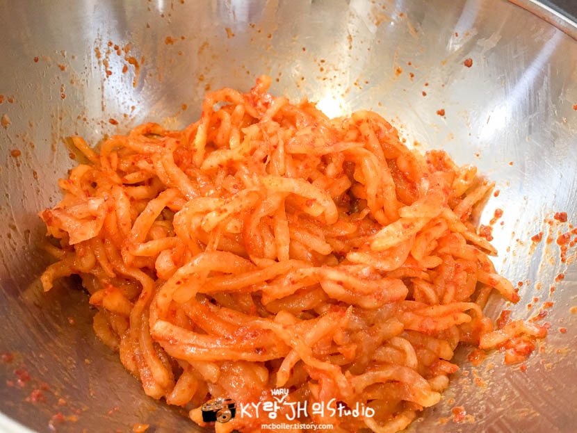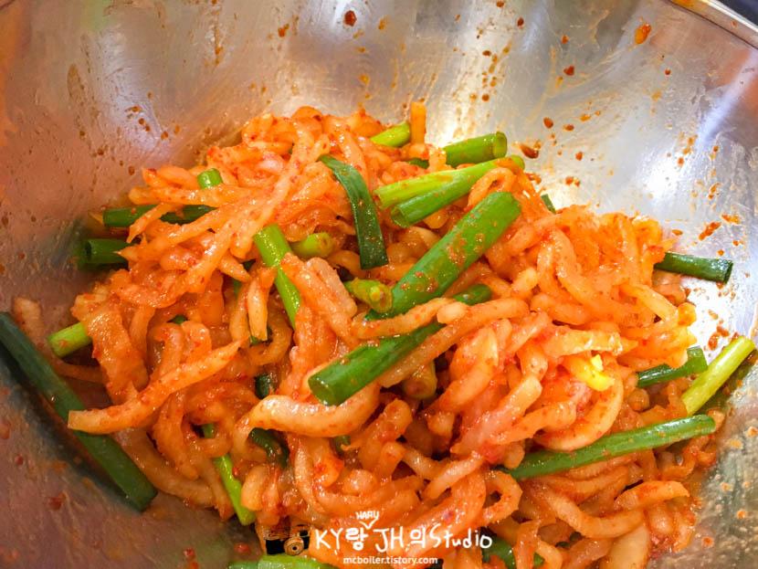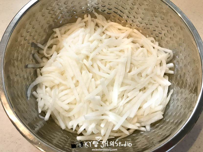 하지만 JH가 무생채보다는 콩나물무침을 더 좋아해서 콩나물 무침만 계속 만들었기에 무생채 만드는 법을 다시 기억하려고 유튜브에서 알아보고 나서 만들었습니다.