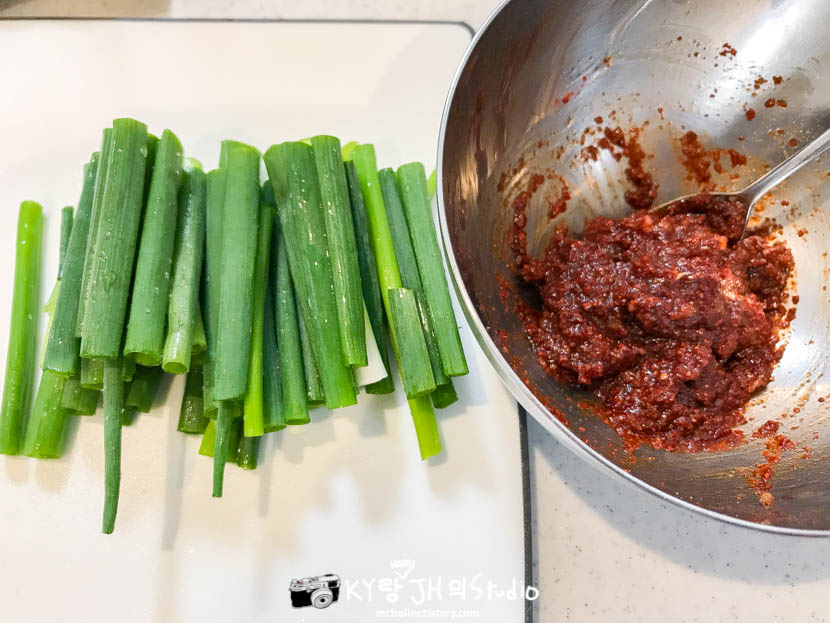 마지막으로 파를 넣고 한동안 재워두면.....