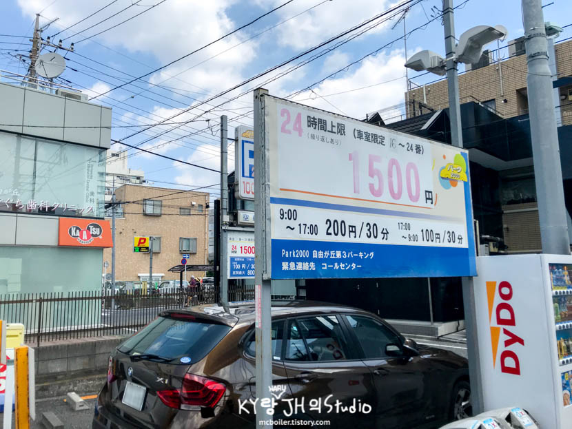 도쿄의 중심부 거기다가 '지유가오카'인데도 한 시간 주차해도 400엔밖에 안 한다니....