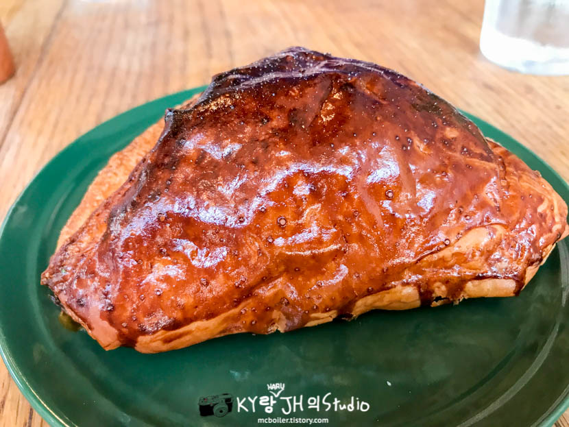 근데 빵이 생각보다 질겨서 썰어 먹기에는 어려웠습니다.
