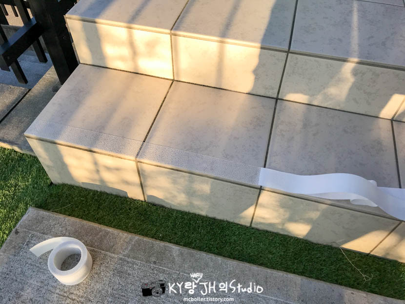 위에도 썼지만 너무 더워서 물청소만 해두고 쉬다가 저녁에 해가 좀 떨어지고 나서 미끄럼 방지 테이프를 들고 다시 나왔습니다.