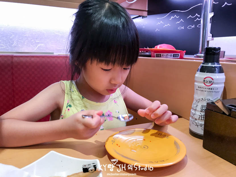 저도 날치알 초밥을 좋아하지만 하루가 먹는 모습을 보고 있으면 날치알에 대한 집념(?)까지 느껴질 정도로 대단합니다.