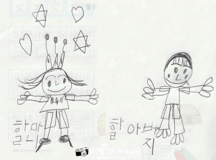 한국어의 읽기 쓰기는 아직 많이 부족 하지만 말하고 듣기는 많이 늘어서 이제는 할아버지 할머니랑 한국어도 어느 정도 의사소통이 가능해졌습니다.