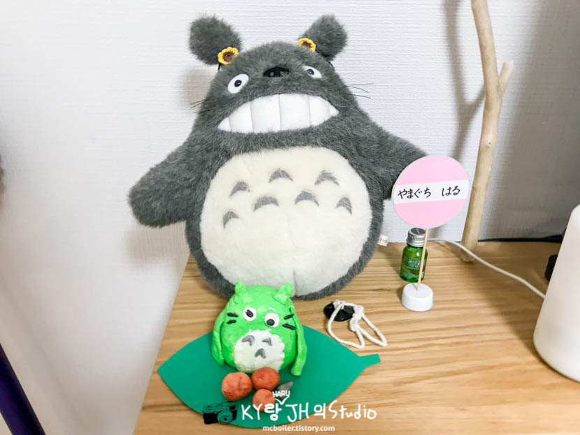 어느 날 저녁에는 작년에 할아버지 할머니가 일본에 오셨을 때 사주신 토토로 인형에 하루가 자기 머리띠를 끼워 둔 걸 보고 웃음이 나왔습니다 ^^