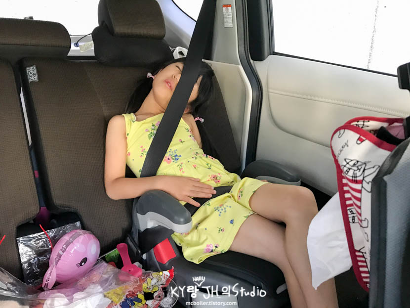 유치원에서 하는 마츠리 이벤트가 끝나고 엄마랑 같이 집으로 돌아오는 차 안에서는 어찌 저런 자세로 잠이 들었는지.....^^;;