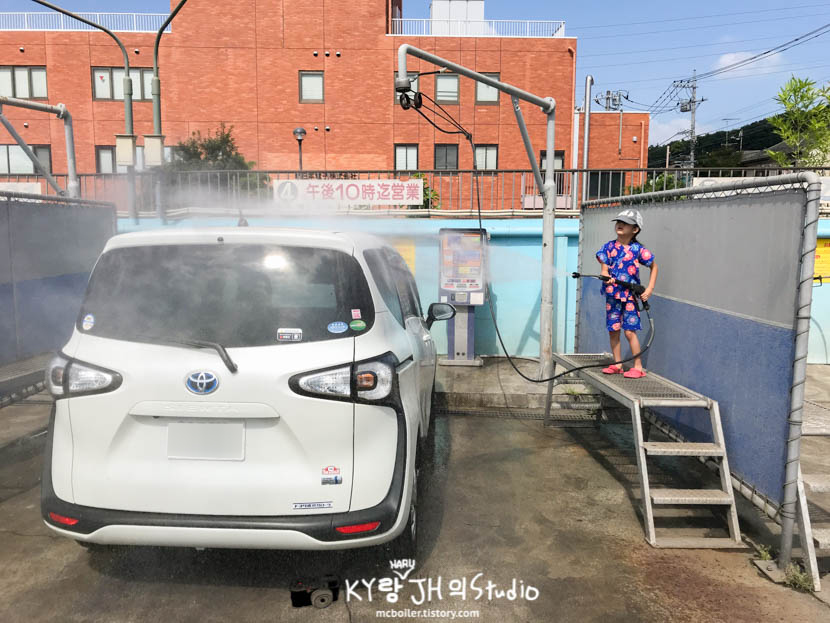 세차는 항상 집 주차장에서 하지만 날씨도 덥어서 좁은 주차장에서 세차하기도 싫었고 오랜만에 고압 세차로 구석구석 묶은 때를 닦아 내려고 집 앞 코인 세차장에 하루를 데리고 나왔는데 주차장으로 향하는 차 안에서도 물은 하루가 뿌릴 거라고 몇 번이고 말했었는데...