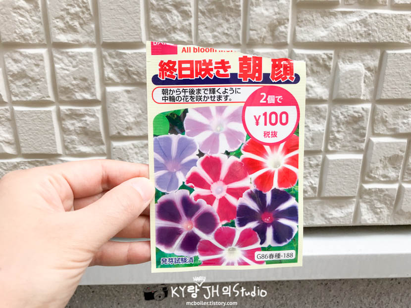 하루는 다이소에서 2 봉지에 100엔 주고 사 온 나팔꽃 씨앗을 심었는데
