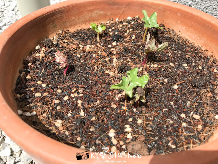 싹이 나온 뒤로는 더욱 열심히 물도 주고 관리했더니 화분이 좁을 정도로 쑥쑥 자라서 분갈이도 해주고